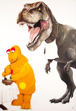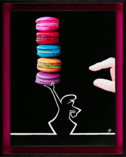 J’injecte l’esprit du FUNNY ART en introduisant des éléments anachroniques et illogiques qui déroutent le regard. Ces œuvres sont des fables modernes et colorées, où la maîtrise technique sert à créer un contraste humoristique entre le sujet solennel et le détail espiègle. »