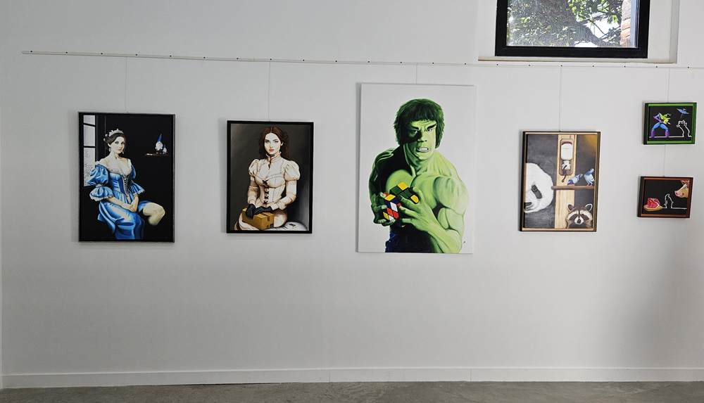 Ma démarche s’appuie sur une technique de réalisme poussé, flirtant avec l’hyperréalisme par un souci du détail méticuleux. Pourtant, ce réalisme est systématiquement détourné par l’intégration d’une touche d’absurdité et de surréalisme. J’utilise une palette de couleurs vives et vivantes, car la couleur est l’expression directe de la joie et de l’énergie que je souhaite transmettre.