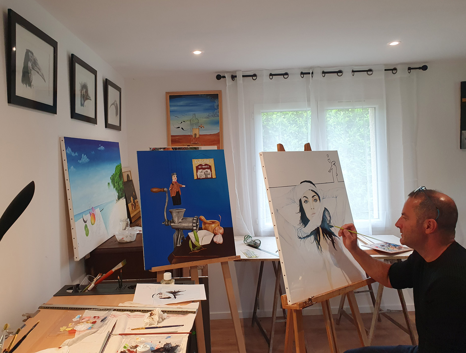 Son exploration artistique s’élargit ensuite à la couleur, expérimentant avec le pastel, l’aquarelle documentaire, et l’acrylique, avant de retrouver une pureté d’expression dans la peinture à l’huile. Fort de participations à des salons, il est invité en 1999 à une exposition personnelle couronnée de succès, confirmant son talent. La vie le mène ensuite vers un parcours professionnel riche et varié – du graphisme à la photographie, en passant par l’artisanat du bâtiment – l’éloignant ainsi de ses pinceaux et crayons pendant un temps, marquant une véritable interruption dans sa pratique artistique.